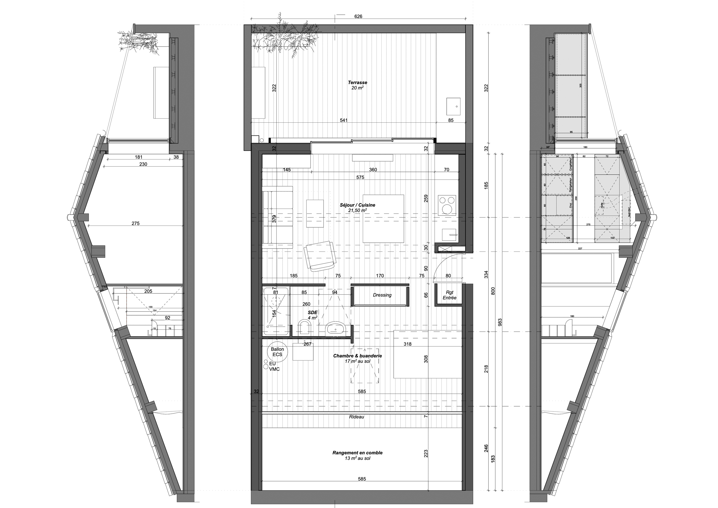 Programme : Réhabilitation d’un appartement de 2 pièces sous combles avec terrasse sur les toits
