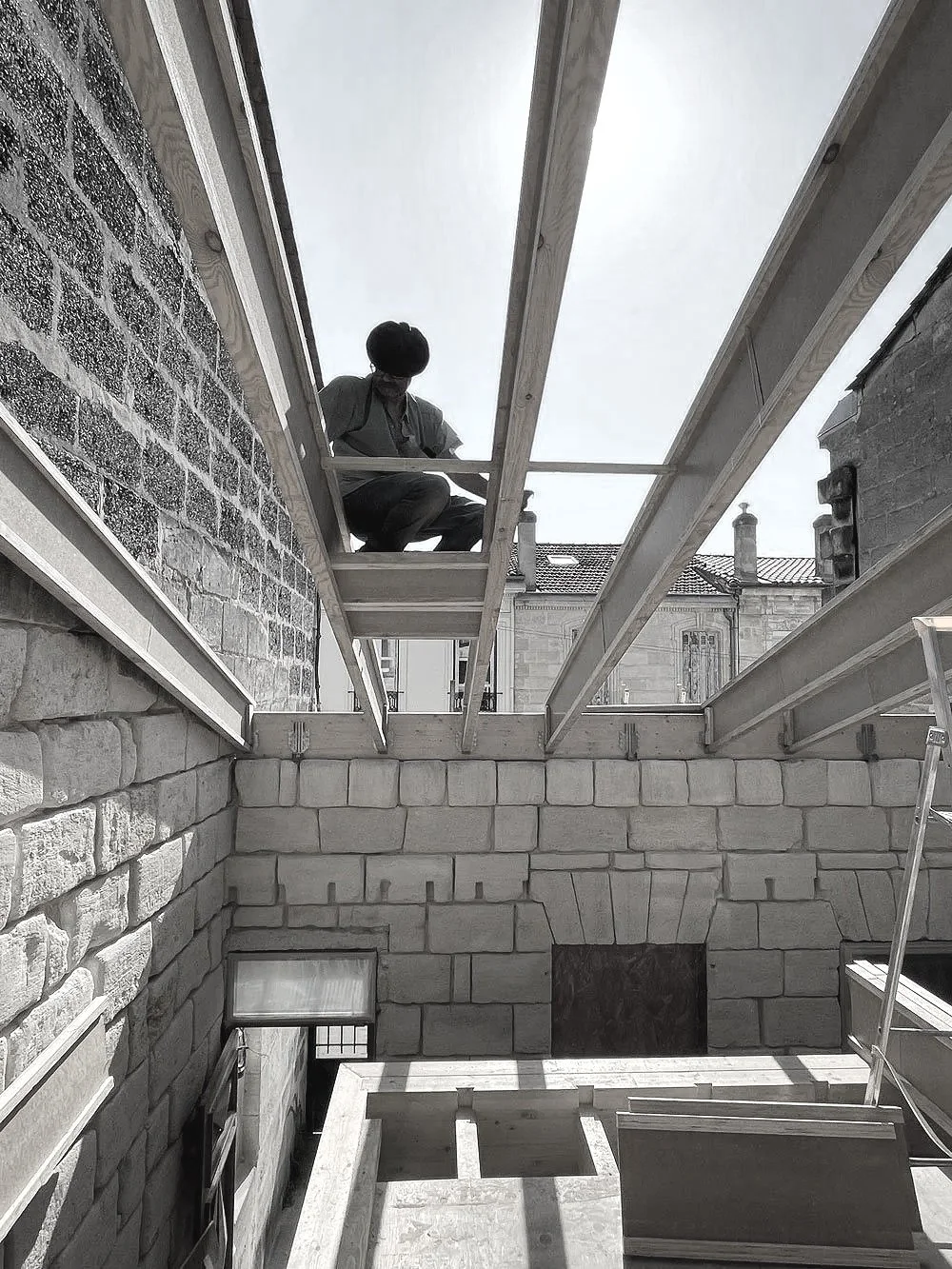 “ Cette autoconstruction marque pour moi un point de convergence entre mes différentes aspirations : concevoir et réaliser, mais aussi partager et apprendre en construisant aux côtés de mon beau-père, compagnon serrurier-forgeron, et de mon oncle, maçon Meilleur Ouvrier de France. Deux personnes qui m’ont inspiré pour devenir architecte. Deux ans d’un engagement total pour une aventure humaine aussi exigeante que passionnante. ”