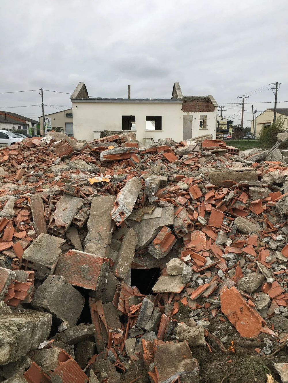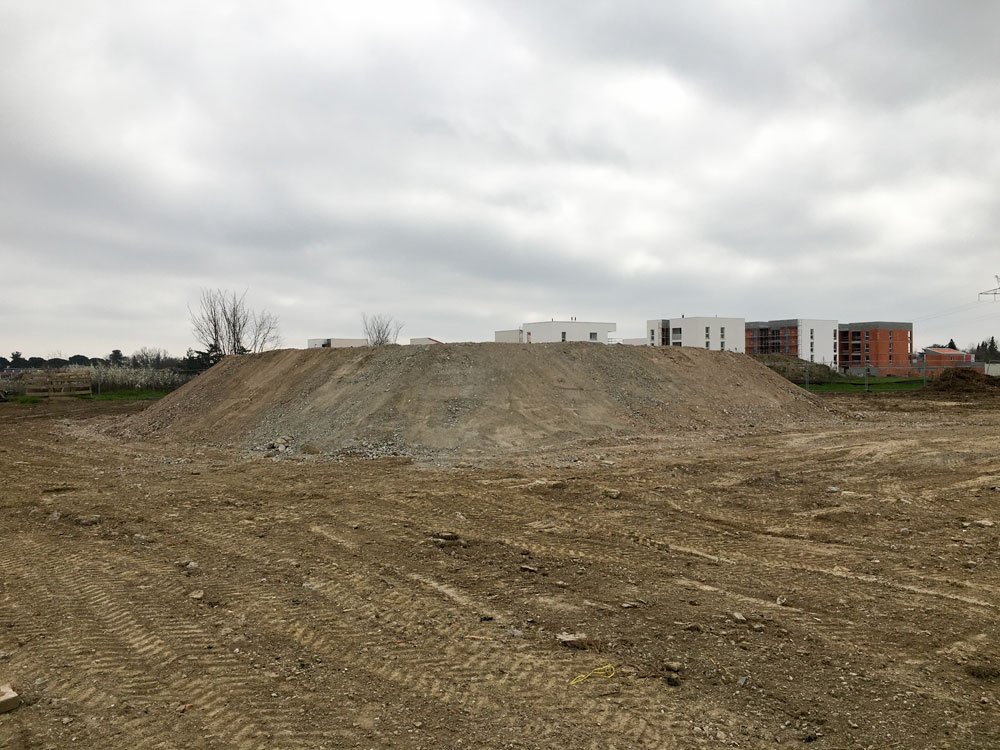 – Le RECYCLAGE : après le désamiantage, la déconstruction sélective et le tri des déchets, la majorité des murs et planchers non contaminés ont été concassés, puis stockés sur place pour un nouveau cycle de vie sur la ZAC. Plus de 400 m3 de granulats concassés mis à disposition pour les voiries de chantier.